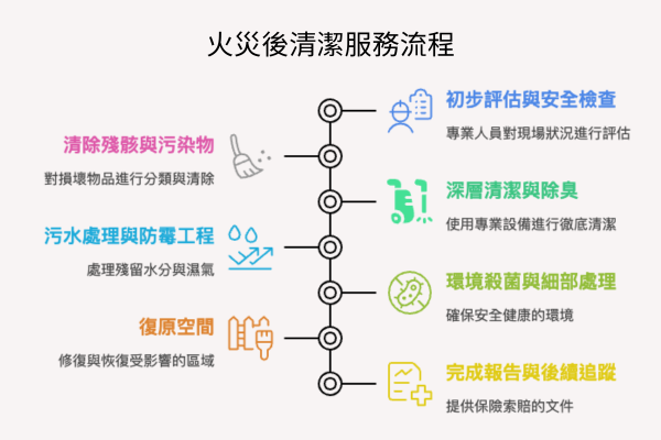 專業火災清潔公司的服務流程通常包含以下7個步驟: