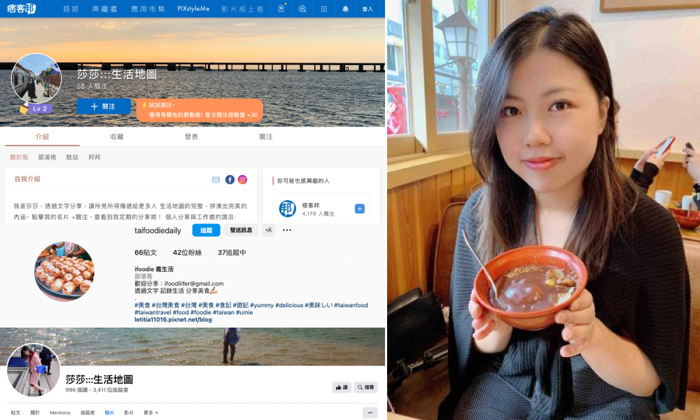 莎莎除了經營痞客邦,還有經營Facebook、Instagram等社群媒體,累積上百篇文章,部落格有超過8萬次人氣,分享的文章包含實際到訪的餐廳食記與禮盒、宅配美食開箱,美食分享文章撰寫經驗豐富。