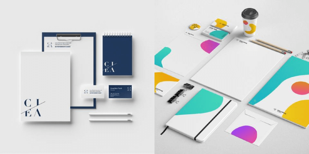 文具的應用除了放上品牌Logo,也會使用標準字、品牌配色,企業的文具包含名片、筆記本、鉛筆、原子筆以及文件夾...等。