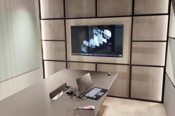 會議室的視覺設計應與企業品牌形象保持一致,色彩、材質與燈光應呼應品牌調性。隱藏式安裝也能維持空間簡潔,桌面整合式控制面板能提升操作便利性,而線材管理也是視覺整潔的關鍵。