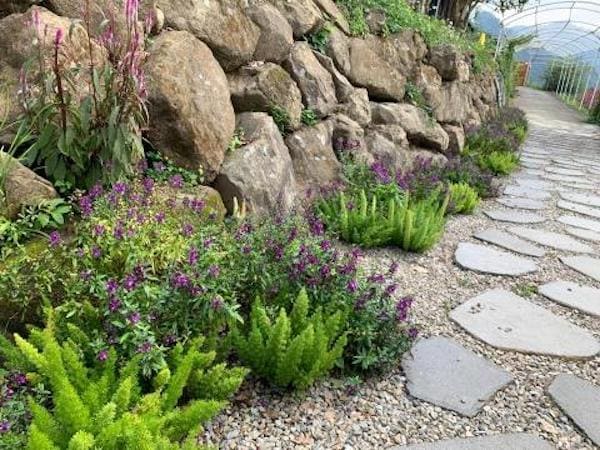 堅固耐用的各式石材也是常見的庭園設計元素,不僅可以作為步道的鋪面材料,還可以用於建造石階、花圃、花台、假山…等造景,創造出變化多端的時尚庭園。
