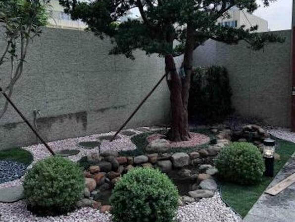 碎石也是庭園設計的常見元素,尤其常見於充滿禪意的日式庭園,鋪設碎石有抑制雜草生長的效果,可以讓庭園造景更清爽俐落,有效降低庭園的維護成本。