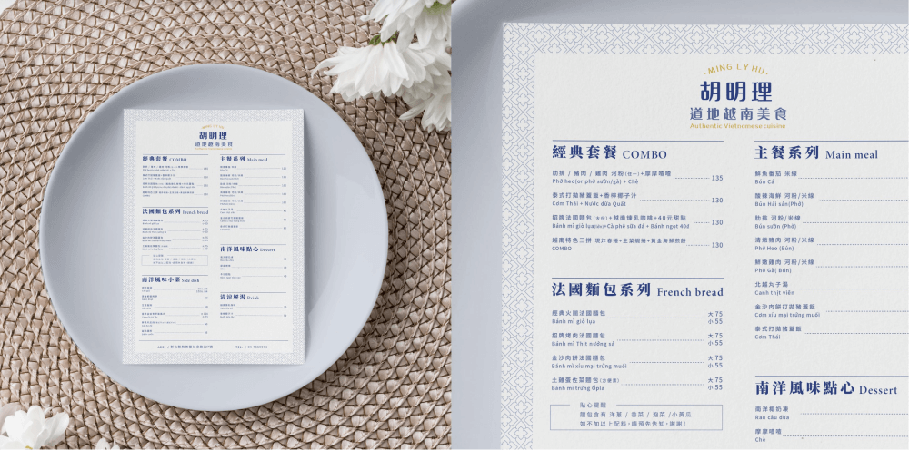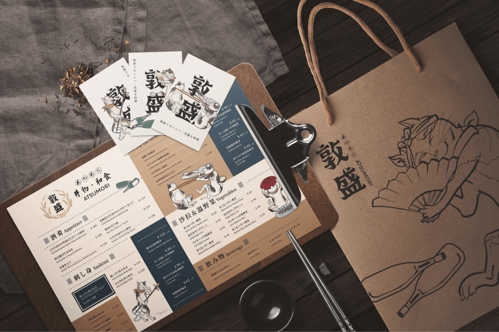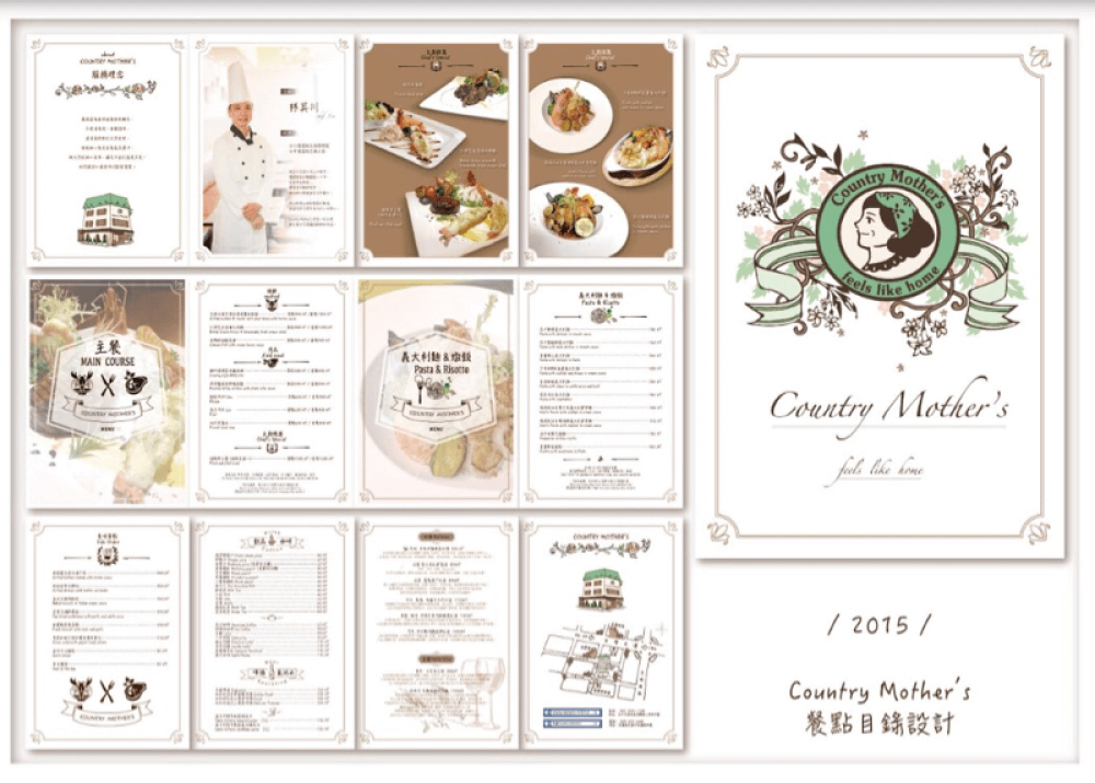 大部分的菜單分為兩種設計,第一種是一張式的菜單,多為直接畫記的點菜菜單;另一種則是一本式,搭配餐點圖片的菜單,兩種菜單各有其設計上的需求及功能,可以視您的需求與設計師討論合適的菜單設計。