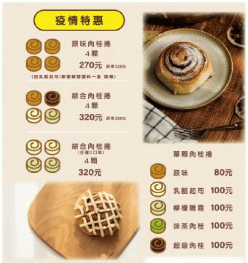 小吃店菜單與早餐菜單設計相同,多為點餐式菜單;另外只有單一品項的甜點菜單或小吃菜單,則會著重於品項圖片的呈現。