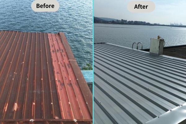 鐵皮屋頂翻新不僅限於鐵皮本身,還包括改善整體屋頂結構、排水系統以及鐵皮屋設計。專業屋瓦團隊會檢查屋頂的結構安全,確認排水系統是否暢通,再根據檢查結果決定修繕項目,包含:更換浪板、重新塗補防水、防鏽或隔熱漆、清理天溝或排水管內的髒污…等,此外,專業團隊也可以根據建築風格為屋主更換各式鋼製的造型屋頂瓦片或琉璃鋼瓦,以提升屋頂美觀或符合房屋整體的藝術風格。