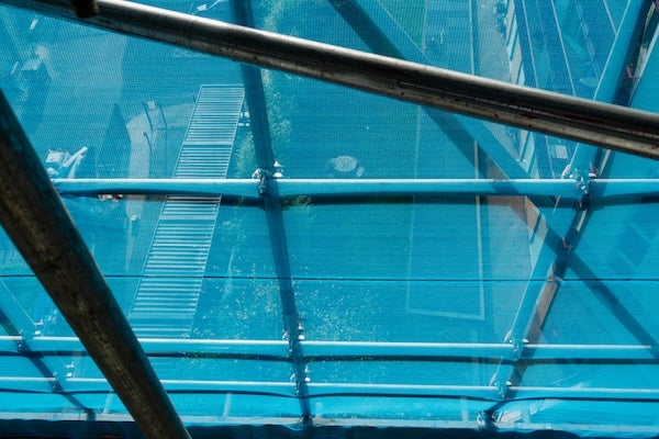 建築工地、高樓洗窗等高空工作危險性極高,除了工人需要確實穿著完整的防護裝備外,搭建工程鷹架時也需要加裝防墜網,避免施工材料與工人不慎墜落。