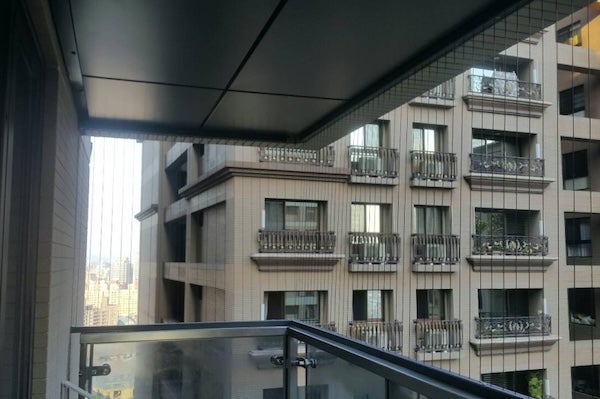 新修正的建築法規允許家中有孩童、老人與寵物的住戶在陽台安裝防墜設施,許多業者以此法規推出隱形鐵窗作為陽台防護網。
