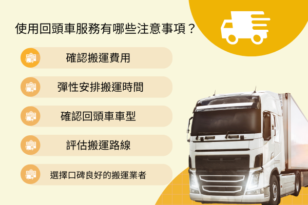 若您選擇使用搬運公司的回頭車服務,需要注意以下5點事項: