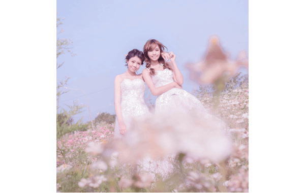 韓式閨蜜婚紗照不似一般婚紗照給人華麗、隆重的感覺,而是更強調簡約淡雅的風格,拍攝女孩們相處時最自然的一面,在後製上也不過多的修圖,而是在拍攝時盡量以柔和的自然光捕捉人像。在拍攝韓式閨蜜婚紗照的時候,不妨挑選優雅大方的蕾絲長裙,搭配空氣感的自然捲髮或韓式低包頭,拍攝背景則可選擇素面或精緻簡約的佈景,讓拍攝出來的婚紗照更具設計感。
