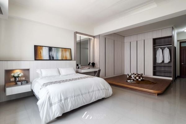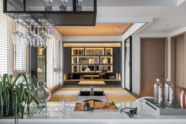 而和室則是以架高木地板所劃分出的獨立區域,使客廳有更多元的休憩空間與使用彈性,墊高的地板可以規劃收納空間,增加公共空間的收納機能,若不習慣在傳統和室內需要跪坐或盤腿,可以將傳統茶几變更成升降桌設計,讓坐下時腳有更舒適的放置區,此外若有搭配傳統的障子門或新式拉門,可以使原本開放的和室轉變成獨立的空間,做為客房或兒童遊戲房使用。