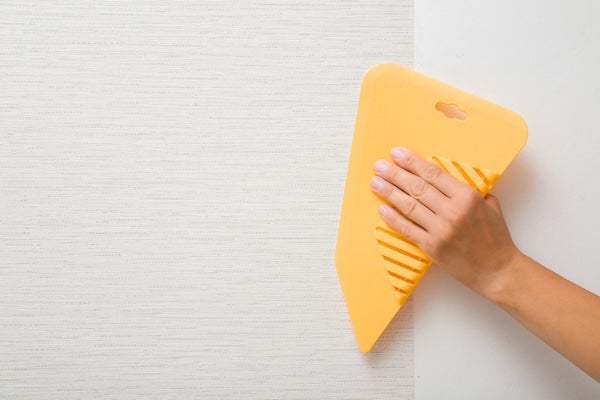 黏貼壁布的過程中需注意施力均勻,避免因力道不平均,使壁布表面產生皺摺或氣泡;黏上後也應使用刮板自中心向四周緩慢推壓,避免因重壓而導致膠水溢出,並確保壁布緊密服貼於牆面。
