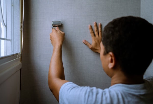 完成施工後,師傅會裁切牆邊、門窗邊緣與插座邊緣的多餘壁布,並確認內外轉角處是否服貼、沒有任何氣泡、邊緣翹起…等缺陷,若出現氣泡,師傅會使用細針或熨斗清除氣泡。確認無誤後,師傅會使用濕布清除壁布接縫處溢出的膠水,確保壁布牆面整潔平整。