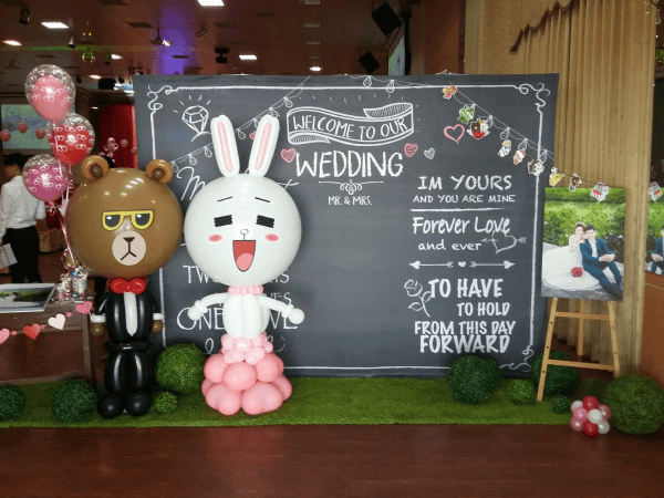 五彩繽紛的婚禮氣球佈置給人一種童趣、活潑的感覺,巨大的氣球柱、氣球拱門,或是外型各異的造型氣球皆是相當經典的佈置元素,而氣球好收拾的特型,以及便宜的價格亦是許多新人喜歡採用氣球佈置的原因之一。