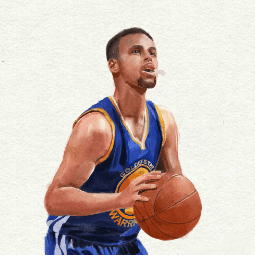 插畫家簡介:擅長人像寫實、卡通風電繪畫圖,插畫家擅長以PhotoShop(PS)依照人物照片繪製人像插圖,例如上圖及本篇首圖皆為插畫家以水彩筆刷電繪的寫實人像作品,首圖為日劇 - 與妳的第100次愛戀 宣傳照,上圖則為NBA球星Stephen Curry。