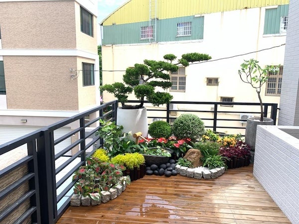 - 方正陽台:將盆栽置於角落營造視覺中心,並搭配高低差打造出視覺層次