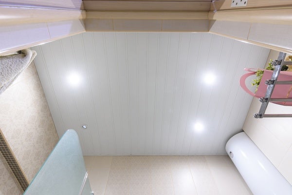 PVC塑膠板具有輕盈、防水、耐濕、易清潔、施工快速、價格親民…等優點,是目前浴室天花板中最廣泛使用的材質,但是pvc天花板的的耐熱性較差,經過長時間的熱氣蒸騰可能會彎曲、變色。