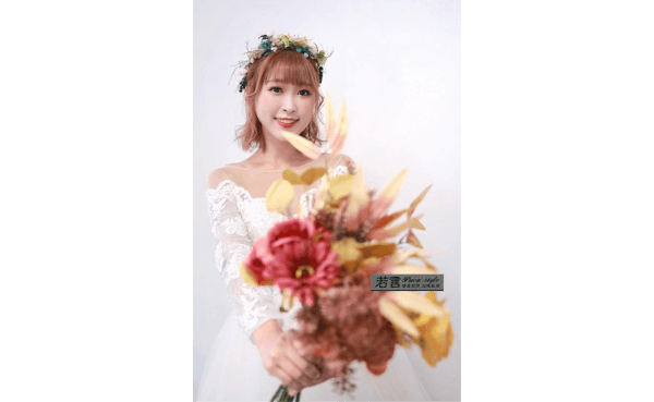 Grace擅長偏韓系的自然裸妝感,以及乾淨而有神的眼妝,能為您打造輪廓立體的無瑕底妝,另外,Grace拿手的乾燥花編髮亦是許多新娘喜歡的指定造型,喜歡夢幻編髮的新娘千萬不可錯過。