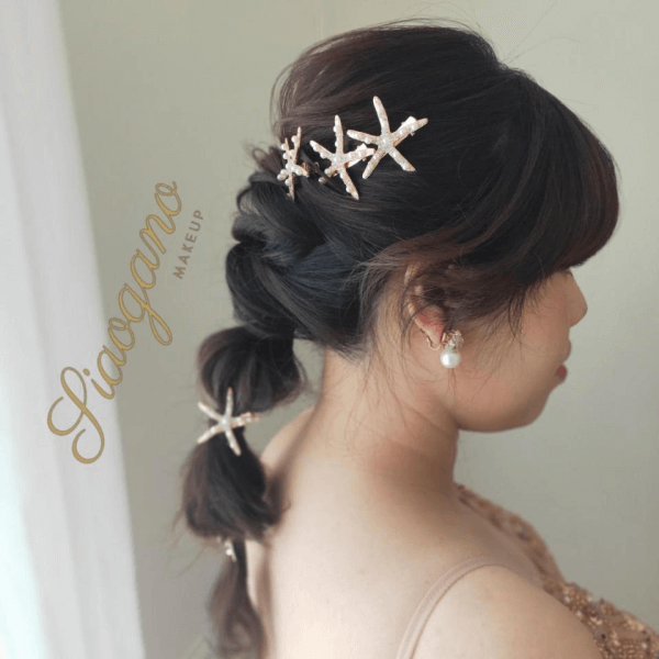 韓系新娘造型講求自然的簡約感,妝感以裸妝為主,希望營造出新娘自然的亮麗感。韓式新娘髮型推薦以低馬尾、中低盤髮...一類的髮型,看起來氣質又優雅!若您覺得太單調,也可以以編髮纏繞的方式增加變化感,營造柔美的女人味,或是搭配一些造型簡單的配件營造質感名媛風。