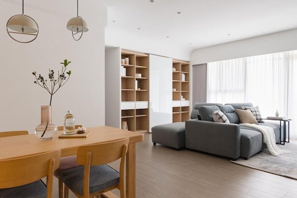 裝潢天花板能隱藏管線並提升空間質感,但如果樓層高度較低,天花板反而容易使人感到壓迫。設計時應考慮室內高度,適當裸露管線或是採用局部封板包覆樑柱與管線,既能提升空間美感,又不會犧牲空間高度。