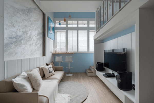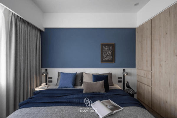不同亮度與飽和度的藍色能帶給人不同的感受,若搭配亮眼的白色可以讓空間更輕盈,放大視覺空間;而搭配沈穩的灰色則可以營造寧靜與知性的空間氛圍,讓人更平靜與放鬆。