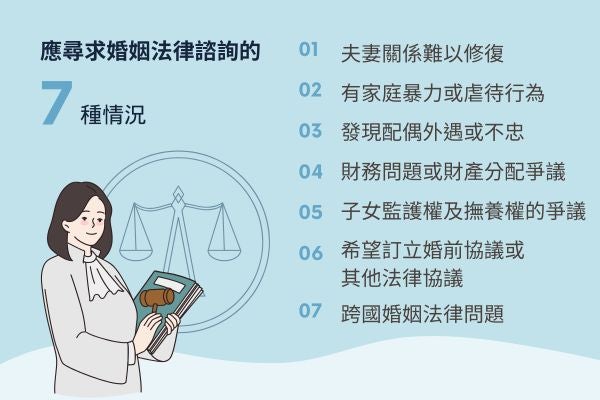 以下為您整理常見的7種應尋求婚姻法律諮詢的情況: