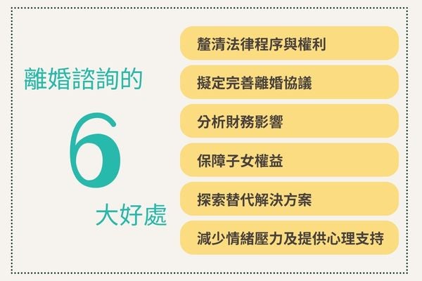 面對離婚的重大決定時,事先進行離婚諮詢,能讓雙方了解自己的法律權利和義務,也能使夫妻更理性評估離婚的影響,以下將為您整理離婚前做離婚諮詢的好處: