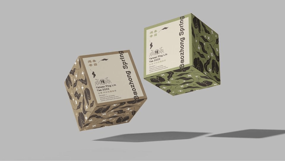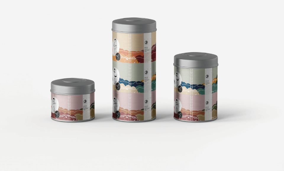 設計師Leona為茶葉品牌設計的包裝,以獨特正方體紙盒、傳統茶葉圓罐與袋裝包裝做出區別,並選用茶色與綠色作為兩種不同茶種的包裝,盒身佈滿茶葉圖案讓人一眼就看出販賣的商品是茶葉。