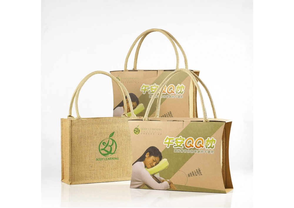 ww-office為枕頭打造提袋的包裝設計,除了讓體積大的枕頭能更方便拿取,選用黃麻提袋做為包裝主體,還能重複使用並兼具品牌傳播的效益。