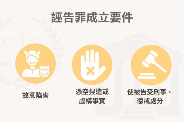 簡單來說,誣告罪的成立是建立於「故意陷害」、「憑空捏造或虛構事實」及「使被告受刑事懲戒處分」之上,但若符合以下狀況,則無法以誣告罪起訴: