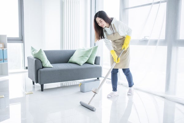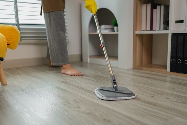 - 使用乾淨拖把,擰乾至適當濕度後拖地