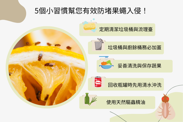 如果想要家中不再有果蠅出沒,以下整理5個小習慣可幫您有效防堵果蠅入侵: