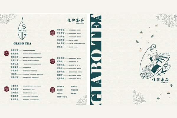 求學過程以設計專業一以貫之的設計師劉佳蓉,設計項目以廣告與商業設計為主,曾為多家品牌設計過Logo、菜單、名片...等,設計風格多為簡約風與文青風,從設計師為佳柏茶品設計的菜單與Logo,可以看見設計師將與茶葉相關的要素以簡潔的方式融入品牌名稱中,設計出清新自然也不失特色的品牌Logo。