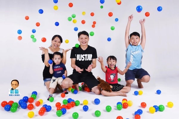 ▲一家五口拋起彩球的歡樂瞬間,照片生動又充滿童趣。