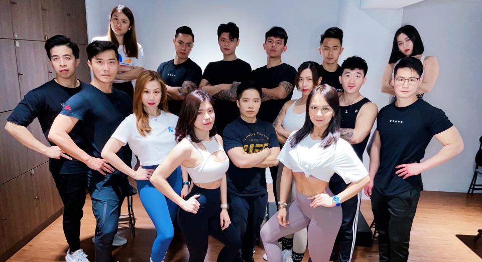 ▲照片中的男女以不同姿勢展現自己的健身線條,站位層次明顯,視覺效果十足。