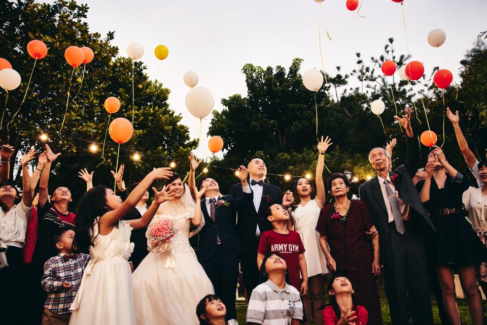 婚禮、節日活動...等場合可準備氣球、聖誕帽、造型眼鏡...等道具供團體照使用,能讓氛圍更活潑歡樂,還有助於提升畫面一致性。