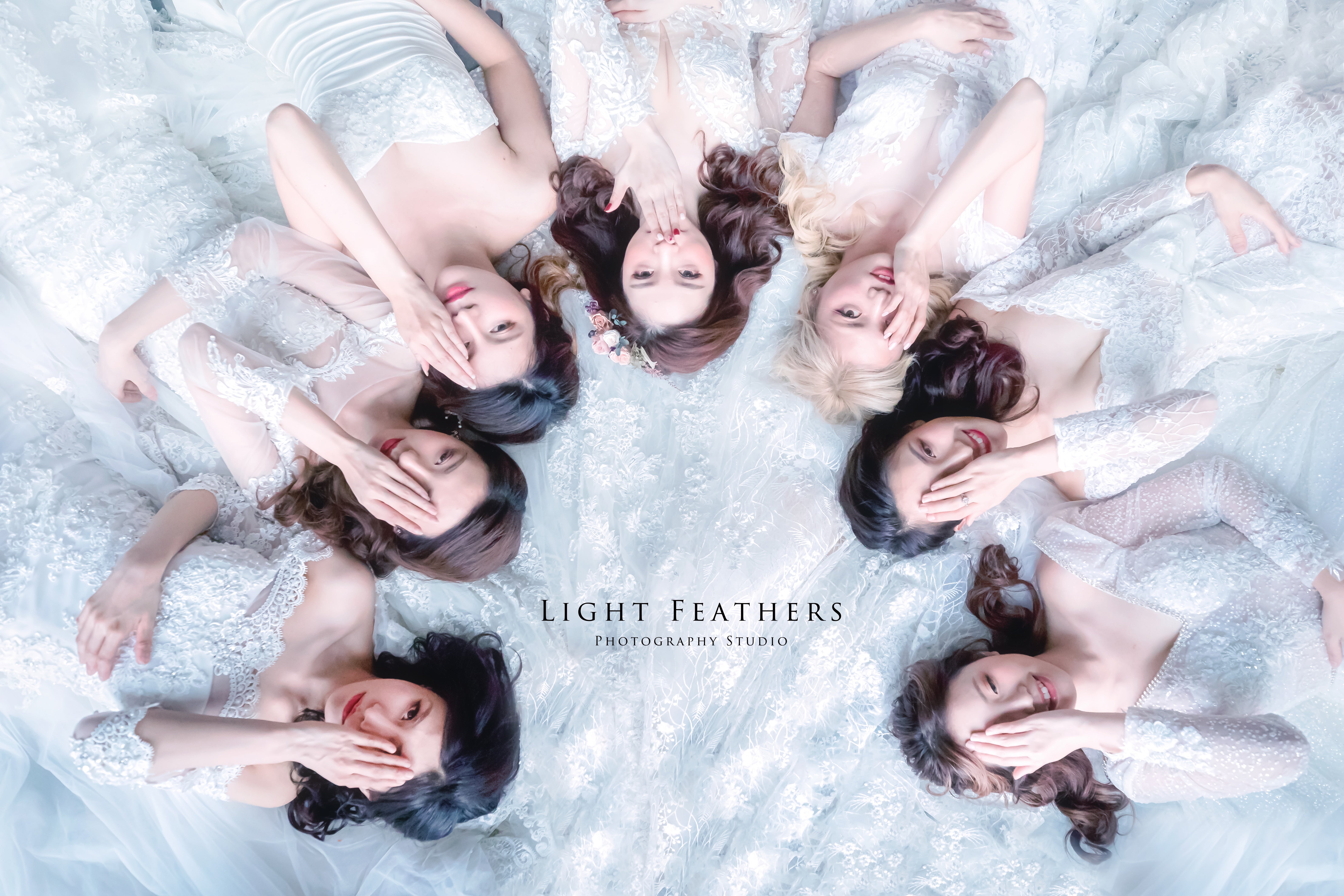▲全員穿著粉色系的正式服裝,各自擺出專業有魅力的pose,前站後坐帶出景深效果。