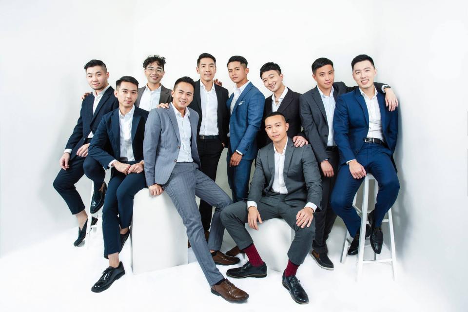 ▲男子們西裝筆挺,姿勢自然,透過高低層次及位置,巧妙避免畫面過於擁擠的問題。