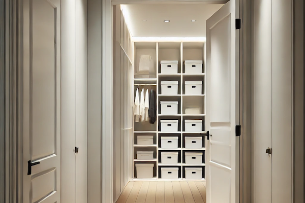 若家中有狹長的走廊空間,可以在走廊盡頭隔出儲藏室,收納行李箱、生活備品或季節性的裝飾品或衣物,不僅能充分利用空間,還能增添家居的整體設計感。