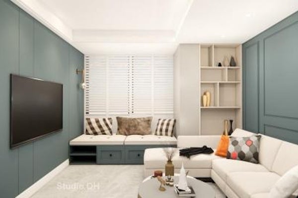 客廳當中的臥榻區通常規劃成休憩空間,讓家人可以坐臥在窗邊享受窗外風景,另外,當家中有多名訪客時,還能作為額外的座位區,解決小客廳座位不足的問題。