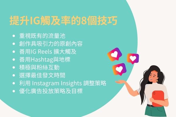 以下將為您整理提升IG觸及率的8個技巧,幫助您了解該如何擴大貼文的曝光範圍,增加貼文的能見度: