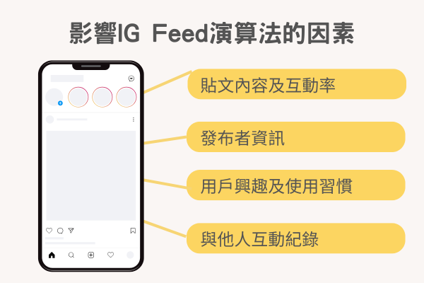 IG Feed是顯示在用戶首頁的內容,IG主頁演算法主要根據以下4個要素決定貼文排序: