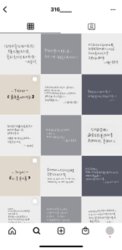 在IG中分享手寫歌詞、語錄及文字的參壹陸,主打手寫字因此不需要圖片或是特殊的文字排版,整體版面以同色調但不同深淺的顏色作為圖片底色,圖片主要內容則是其手寫的文字,視覺版面舒適、乾淨。