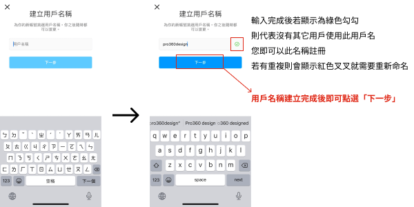IG帳號名稱可以分為用戶名與名字,前者即是上面步驟教學時需要輸入的用戶名,由英文、數字和符號組成,若您是品牌帳號建議用品牌的英文名加上地區縮寫命名,方便消費者搜尋您的帳號,例如:本平台PRO360達人網即以pro360_tw註冊,而香港官方的IG帳號則為pro360_hk;星巴克台灣官方帳號則是starbuckstw;IKEA台灣則因應他國IKEA官方帳號多為完整地區名,而為台灣官方帳號取為ikea_taiwan。而名字為帳戶擁有者的姓名或名稱,各語言或數字皆可,命名建議以完整品牌名或是品牌名(個人名稱)與產業(專業)組合,例如:本平台以完整「PRO360達人網」命名;而知名的Instagram經營者Audrey即以大家熟知的「電商人妻 Audrey」命名。