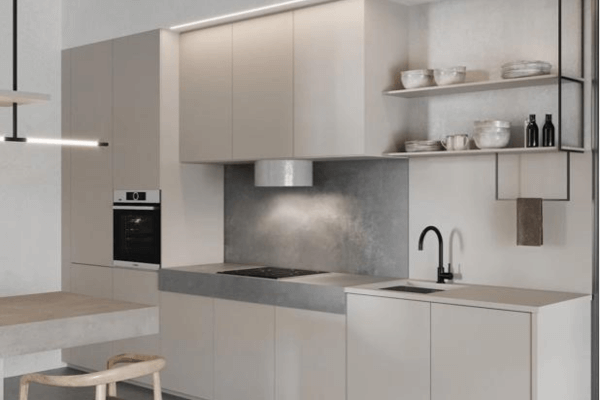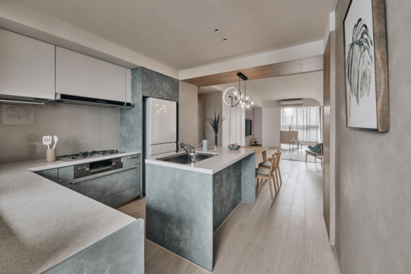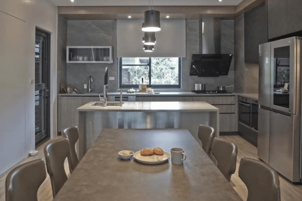 灰色系廚房具有既穩重又現代,亦兼具美感與實用性。淺灰明亮且耐髒、中灰沉穩、深灰則能展現高級感,搭配白色或淺色檯面可平衡視覺重量,而以不鏽鋼或黑色五金則可強化俐落感。另外,若想提升色溫,可加入木質層板或暖色織品點綴,營造剛中帶柔的氛圍。