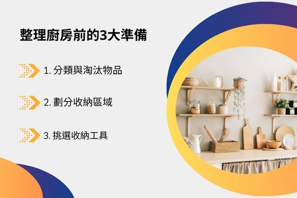 若想擁有整齊好拿取的廚房,整理前需要先做好以下3項前置作業,不僅能讓後續的整理過程更順暢,還能幫助您更了解自己的廚房空間與使用習慣: