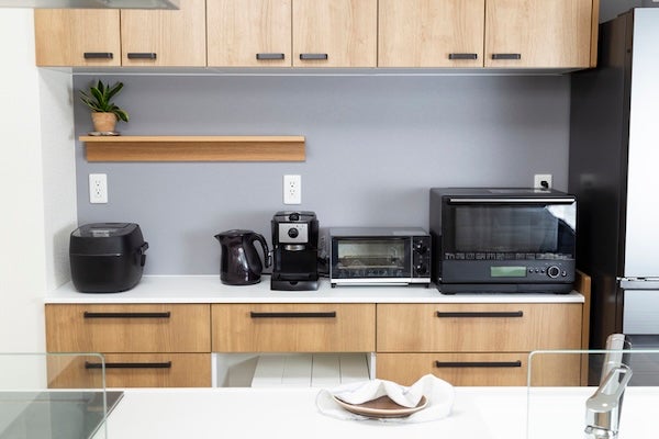 電鍋、果汁機、烤箱…等小家電雖體積不大,但若長期擺放在流理檯上會壓縮操作空間。收納時將果汁機、調理機…等不常用的小家電收納於櫥櫃內,氣炸鍋、電子鍋、烤箱…等常用家電則可擺放於檯面上或電器櫃的開放層架,確保方便取用且不影響其他作業。
