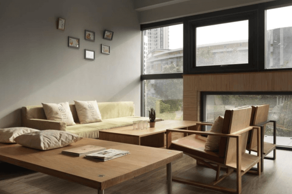 日式溫潤風格以低飽和度與簡潔線條為主,強調光線、材質與色彩的平衡。空間多採用暖中性色作為主調,地板與家具以橡木、梧桐木或竹材呈現自然紋理,搭配亞麻、棉麻...等天然布料與裝飾,營造溫暖而寧靜的氛圍。