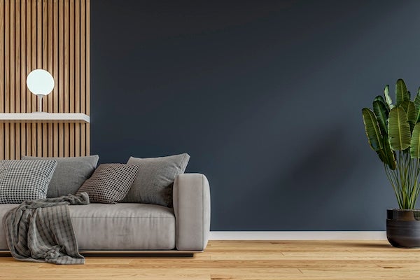 踢腳板的主要功能是遮掩牆邊縫隙並避免牆腳髒污與磨損,踢腳板的高度建議介於8~12公分,可以選擇與牆面或地板顏色為對比色的踢腳板款式,提升客廳的設計感。