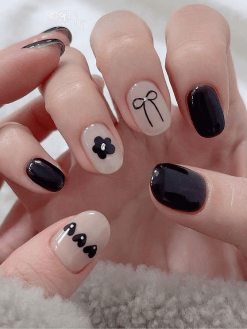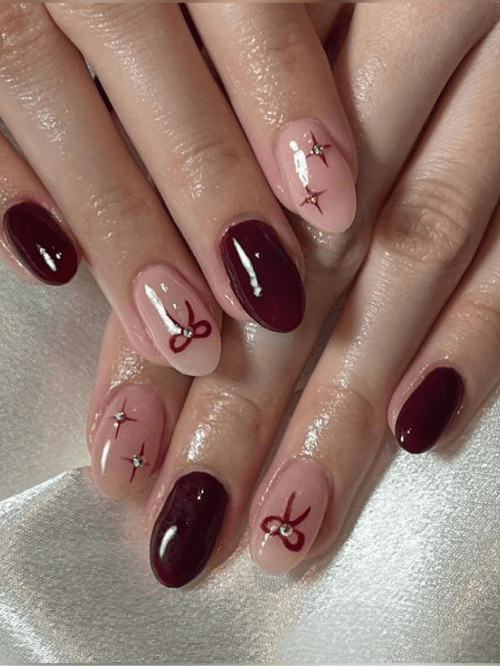 ▼蝴蝶結美甲不只能走甜美路線,只要改變搭配的色系,就能立即改變風格印象,您可以選擇簡約、小惡魔感的黑色,或是更具大人成熟感的酒紅色系。