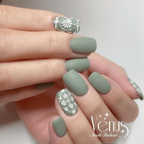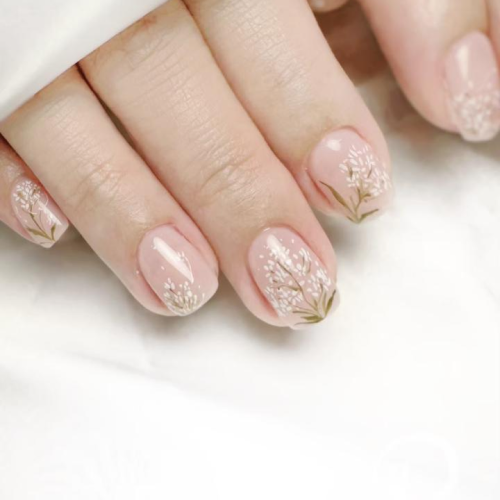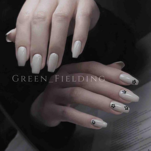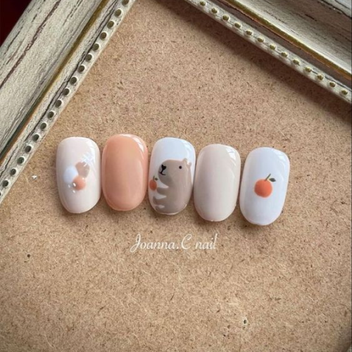 ▼如何提升手繪美甲的質感?選擇簡單的圖案,將手繪圖案的面積稍微縮小,就能讓手繪美甲優雅而不失童趣。